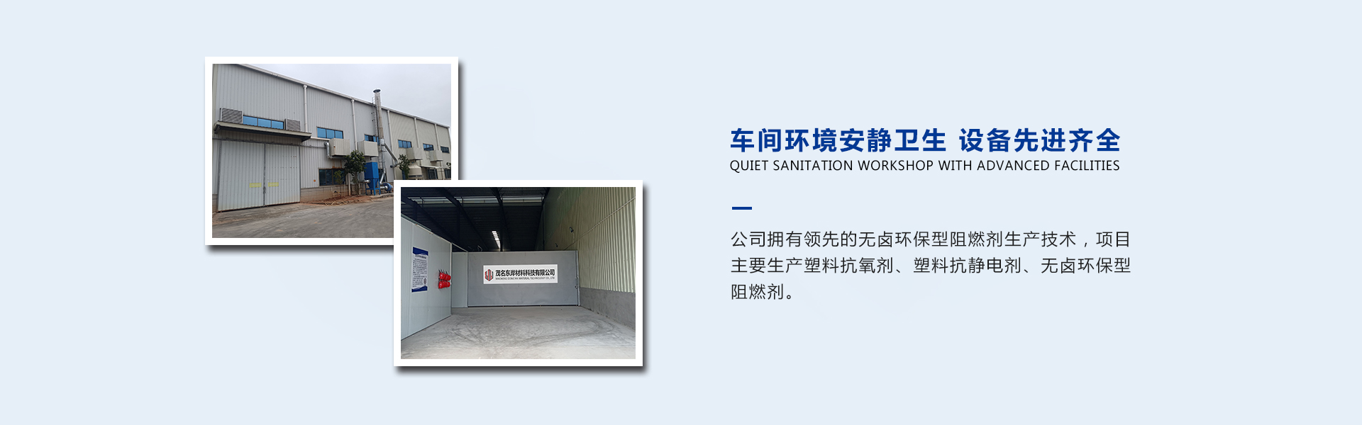 公司擁有先進的無鹵環(huán)保型阻燃劑生產技術,項目主要生產塑料抗氧劑、塑料抗靜電劑、無鹵環(huán)保型阻燃劑。